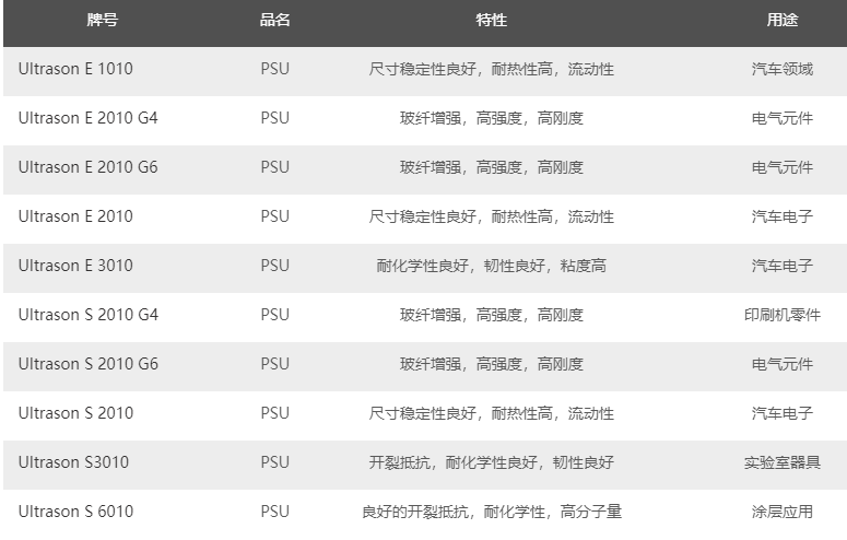 巴斯夫 Ultrason PSU透明塑料的型號(hào)應(yīng)用