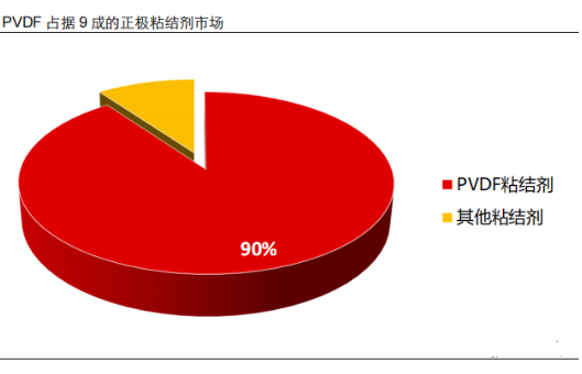 鋰電粘結(jié)劑 PVDF 在全部正極粘結(jié)劑的市場滲透率高達(dá) 90%。