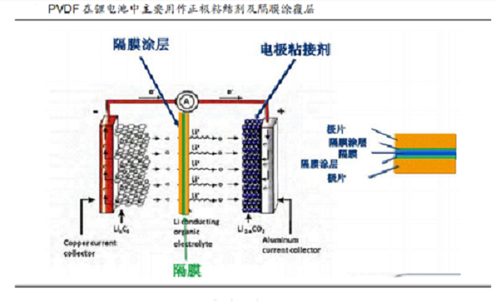 PVDF 在鋰離子電池中主要用作正極材料粘結(jié)劑以及涂覆隔膜的涂覆層。未來(lái)隨著終端新能源車需求高速增長(zhǎng),鋰電池用PVDF 將成為需求主力。