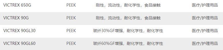 英國-威格斯 VICTREX PEEK醫(yī)用塑料應(yīng)用于醫(yī)療領(lǐng)域主要牌號如下: