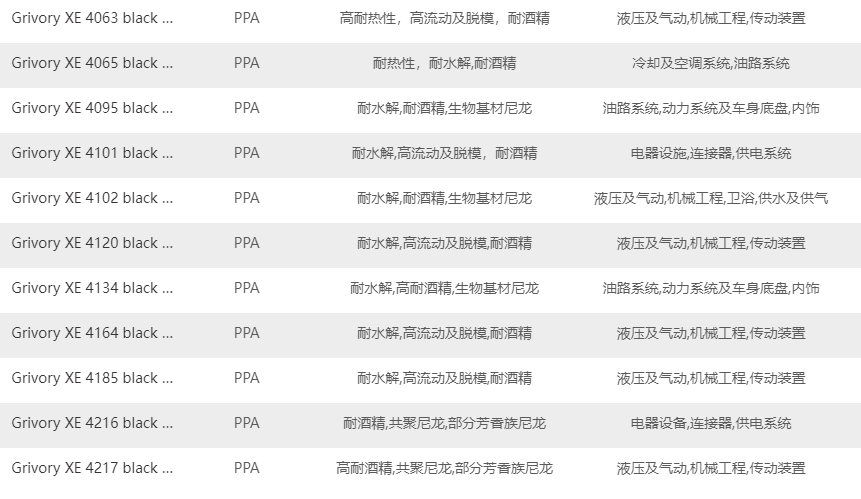 如何快速的找到需要瑞士-EMS Grivory HT PPA原料牌號(hào)?以下給提供是瑞士-EMS Grivory HT PPA塑料的原料牌號(hào)及其產(chǎn)品特性如下表。