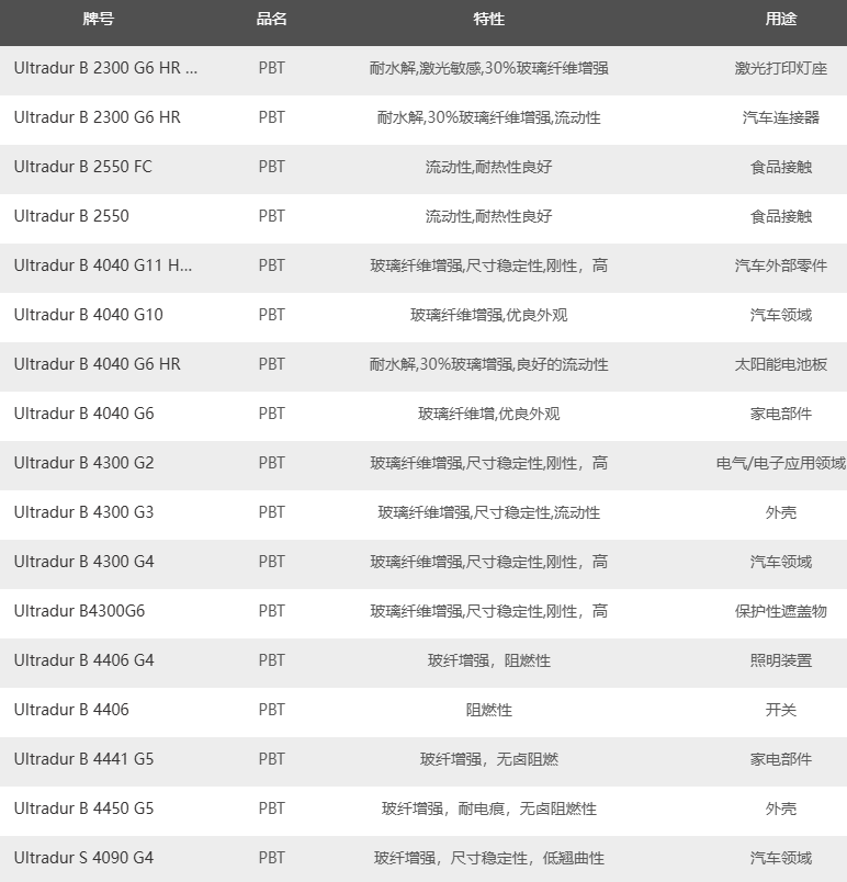 巴斯夫 Ultradur PBT一系統(tǒng)牌號(hào)及應(yīng)用加工
