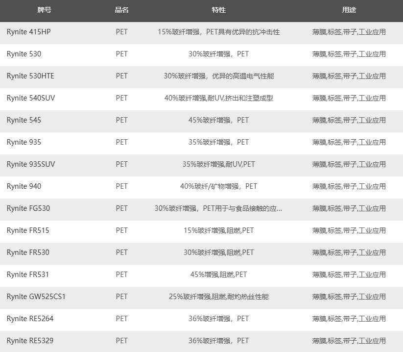 Rynite? PET產(chǎn)品系列牌號(hào)大全