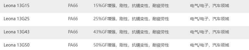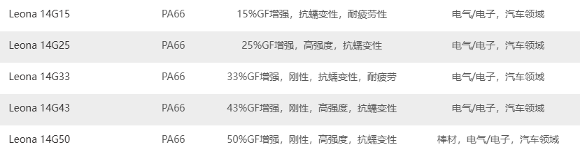 旭化成 LeonaPA66 的增強(qiáng)牌號如下