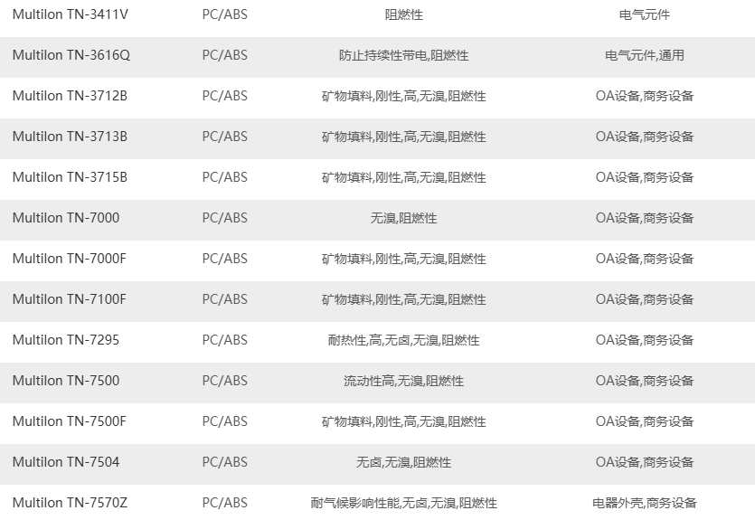 帝人 Multilon PC/ABS阻燃牌號(hào)及用途
