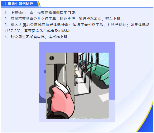 相信今天開始陸陸續(xù)續(xù)有不少人開始上班了吧,電梯間、餐廳、辦公室都是高危區(qū)域,每個(gè)人都不能掉以輕心,在認(rèn)真工作的同時(shí)也要做好防護(hù),科學(xué)防護(hù)是對自己和家人負(fù)責(zé),也是為社會(huì)做貢獻(xiàn)。那么復(fù)工在即,我們?nèi)绾伪Wo(hù)自己免受“新冠”威脅!
