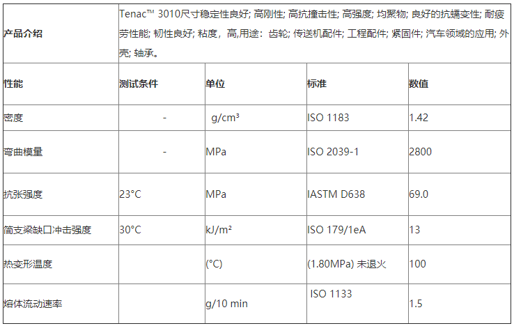 日本旭化成TENAC POM 3010物性表參數(shù)
