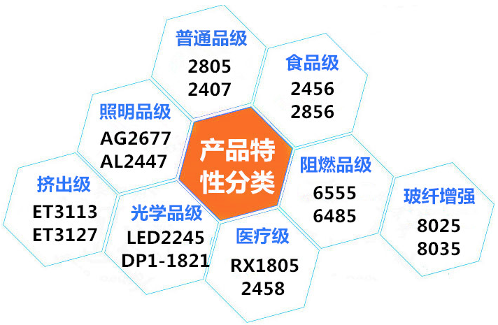 MI=19 ; 普通用途; 良好的耐水解性; 注塑成型; 可提供透明, 半透明和不透明顏色