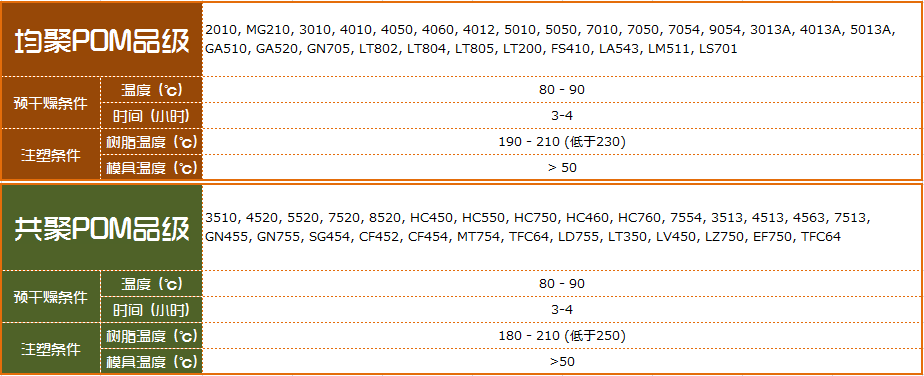 | 快速周期型 | POM 5050 | 標準流動等級,具有高結(jié)晶率,可提高生產(chǎn)效率 | 錄影機零件,座位安全帶零件,齒輪 |