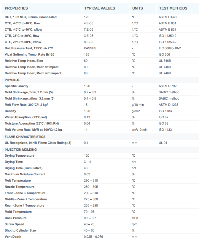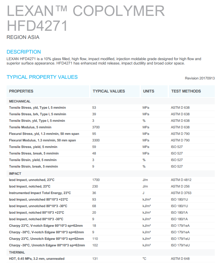 以下是SABIC沙伯基礎創(chuàng)新Lexan PC HFD4271物性表參數(shù):