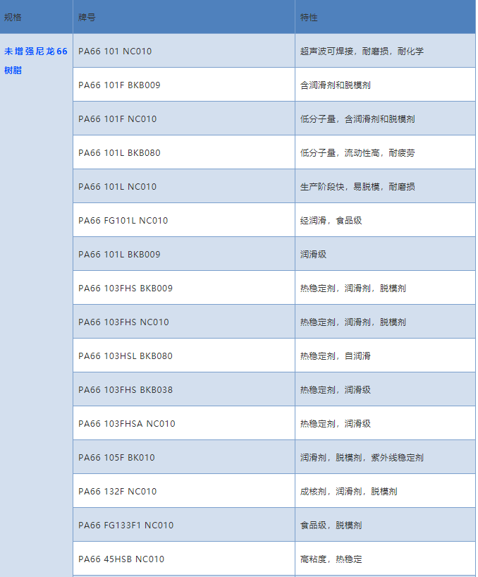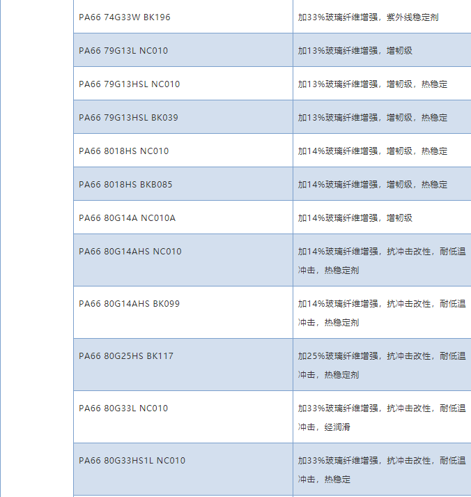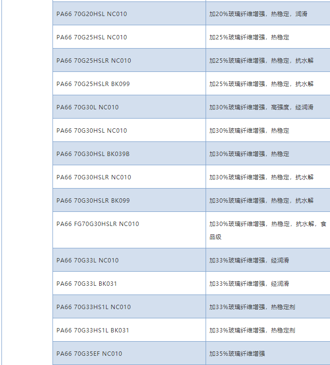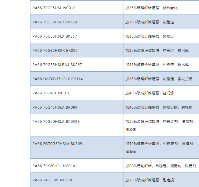 杜邦 Zytel? PA66產(chǎn)品牌號及功能