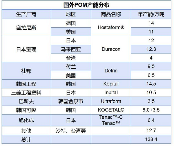 工程塑料:POM全球產(chǎn)能分布