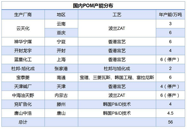 表2 國內(nèi)POM產(chǎn)能分布