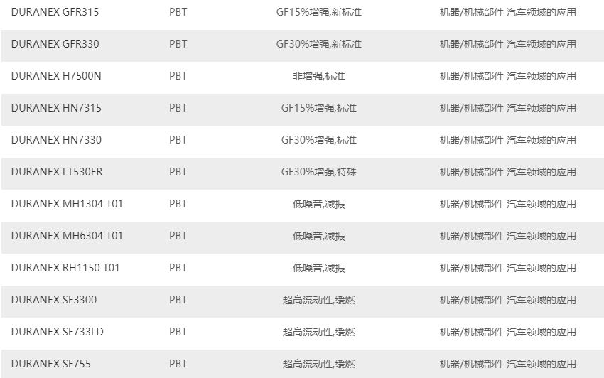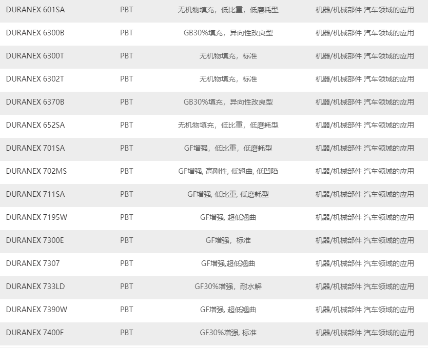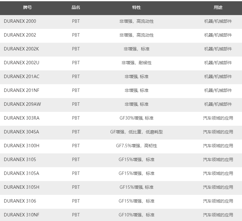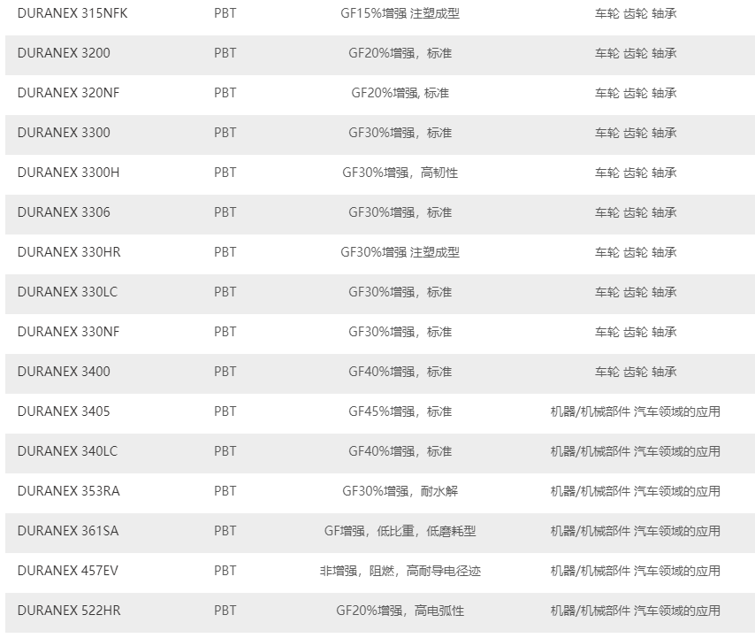 日本寶理PBT塑料的主要牌號: