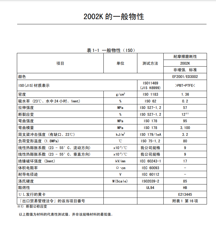 日本-寶理塑料DURANEX PBT 2002K主要特性: