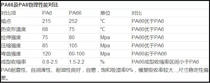 PA66與PA6物理性能對比