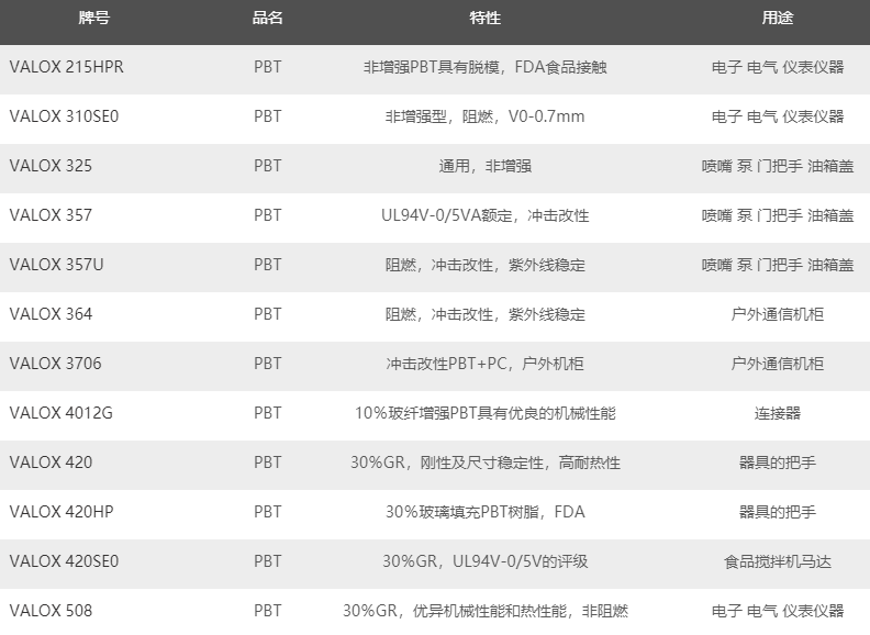 沙特-SABIC Valox PBT塑料主要牌號(hào)及用途