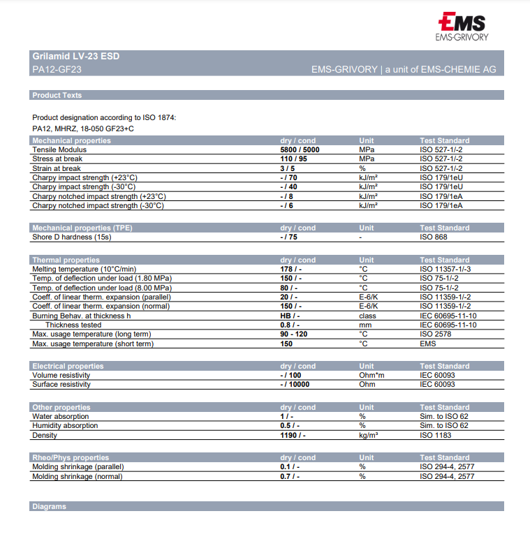 昊恩塑膠貿(mào)易有限公司為您提供詳細的瑞士-EMS Grilamid LV-23 ESD 物性表參數(shù)。