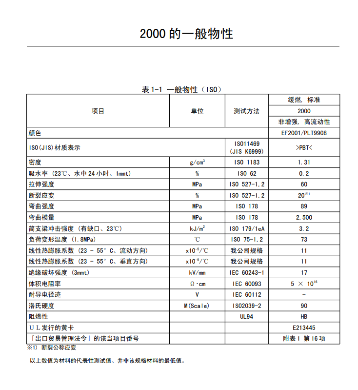昊恩塑膠貿(mào)易有限公司為您提供詳細(xì)的 日本-寶理 DURANEX PBT 2000 物性表參數(shù)。