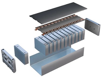 方形電芯及其成組示意圖(黑色為塑料部件)