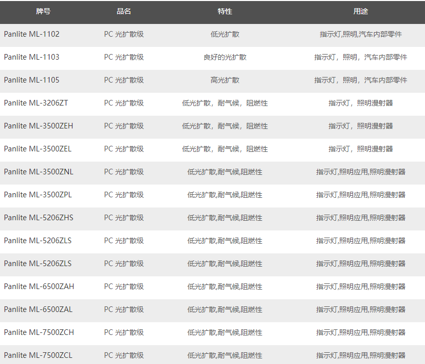 帝人光擴散規(guī)格Panlite?ML系列