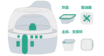 空氣炸鍋主體/支撐環(huán)/炸欄/集油器選Ryton? PPS、Amodel? PPA和Ominx? HPPA這些高性能材料提供優(yōu)異的耐高溫、耐油、耐蒸氣等優(yōu)勢(shì)。其中,索爾維高性能的Amodel? PPA可提供達(dá)40%回收碳纖維含量的產(chǎn)品,Ryton? PPS可提供達(dá)40%回收碳纖維含量的產(chǎn)品。