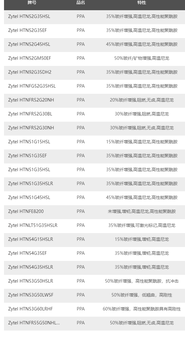 杜邦 Zytel HTN主要牌號(hào)如下:
