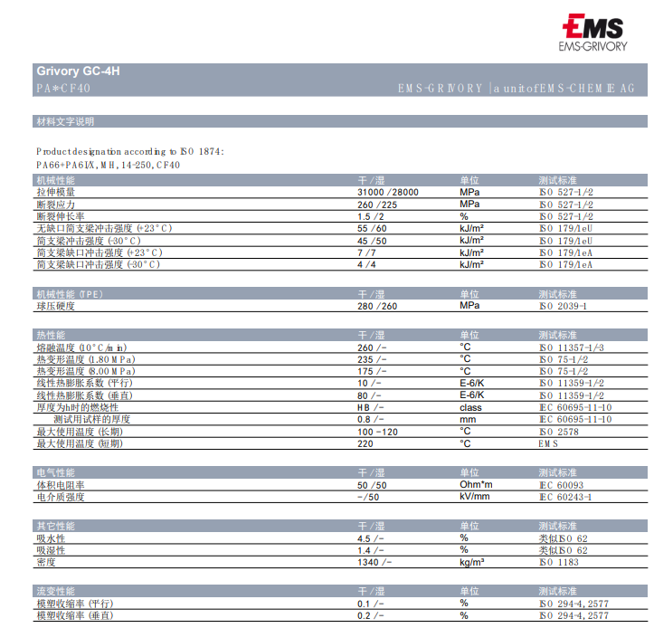 瑞士-EMS PARA Grivory GC-4H是碳纖維增強,耐光, 耐紫外線,耐熱性,半結(jié)晶聚酰胺,以顆粒狀供應(yīng),應(yīng)用于汽車電子電器及照明, 冷卻及空調(diào)系統(tǒng)加工。