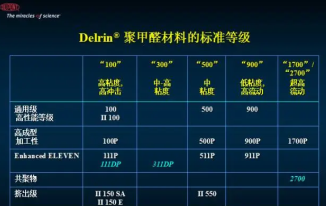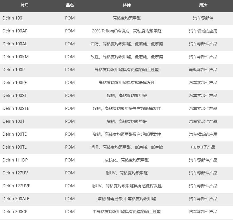 市售的杜邦POM產品主要有如下等級: