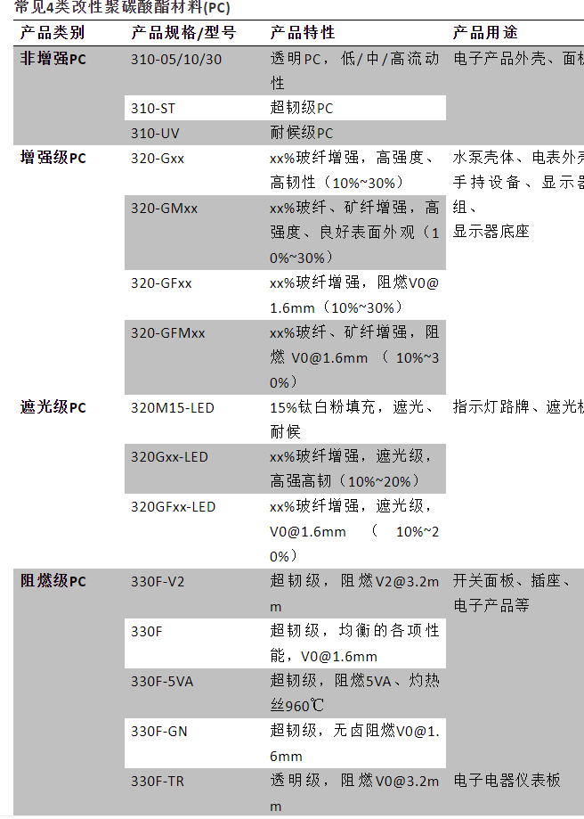 (1)→常見4類改性聚碳酸酯改性材料(PC)