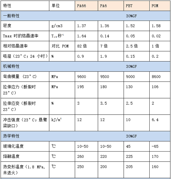 PA66、PA6、PBT 和 POM 特性區(qū)別