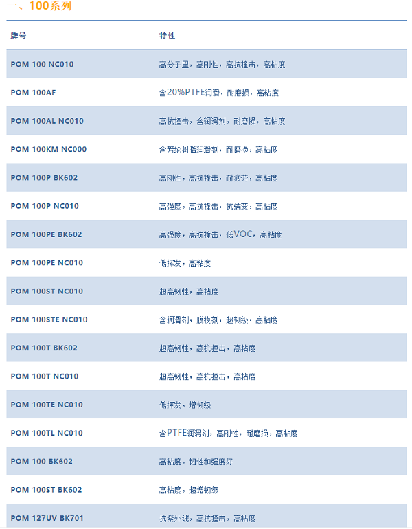 杜邦POM工程塑料的主要牌號