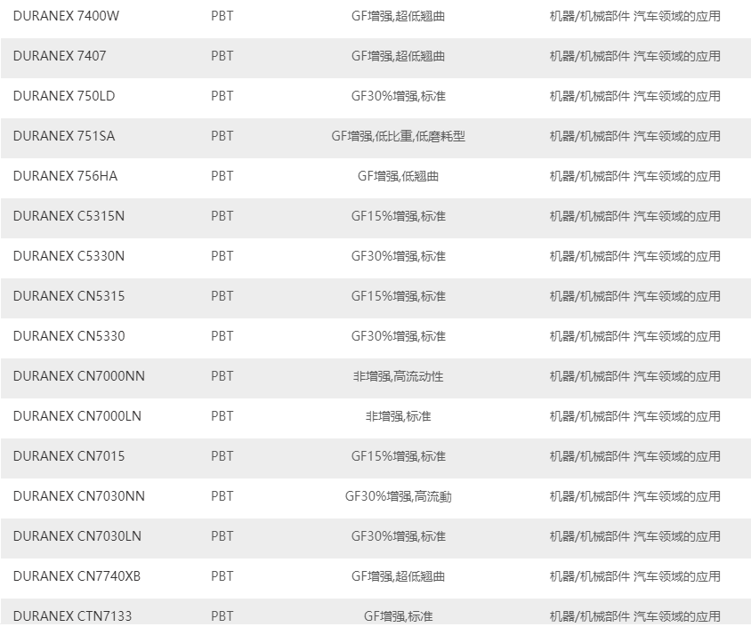 日本寶理PBT塑料的主要牌號: