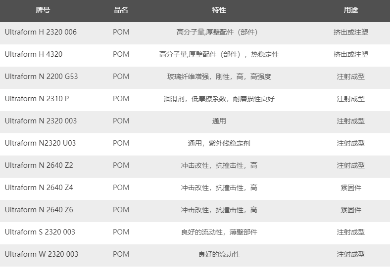 德國(guó)-巴斯夫 Ultraform POM工程塑料主要牌號(hào)及性能物性: