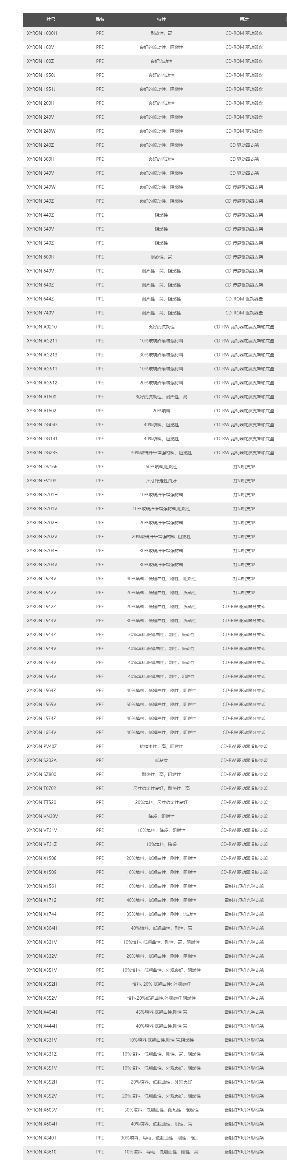 日本旭化成XYRON PPE產(chǎn)品牌號及應(yīng)用: