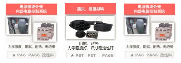 而電氣連接系統(tǒng)材料一般選用聚酯PBT和尼龍,主要性能要求電絕緣和高強(qiáng)度等。
