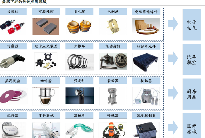 聚砜傳統(tǒng)應用領(lǐng)域廣,集中在醫(yī)療食品汽車電子領(lǐng)域