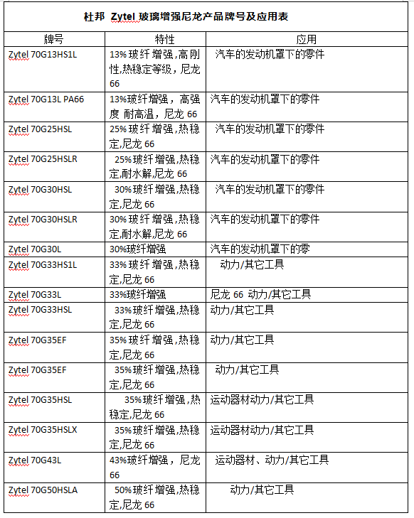 杜邦 Zytel PA66玻璃增強(qiáng)尼龍產(chǎn)品牌號(hào)及應(yīng)用