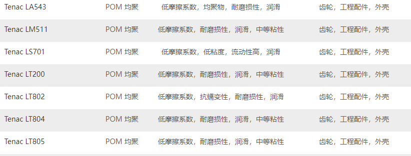 常用旭化成Tenac POM應(yīng)用于齒輪加工的低磨耗牌號工程塑料: