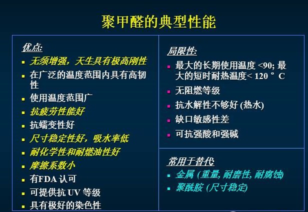 杜邦聚甲醛POM材料屬于優(yōu)缺點(diǎn)都很鮮明的樹脂,具有如下優(yōu)勢(shì)性能: